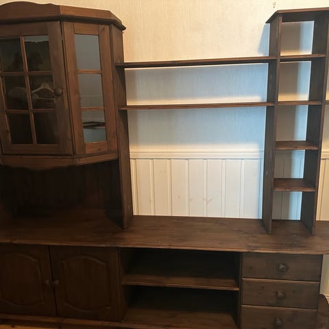 Skjenk og vitrineskap i tre brun