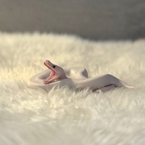 Velger og selge denne ekstremt sjeldne kongepytonen😊denne finnes det ikke veldig mange av i verden..svært få..1-3 stk..uten og overdrive😊denne er en hurricane poss superhurricane albino ivory.😍født 2025..tror ikke du finner noen lik noe sted.så vil du ha en meget unik kongepyton,med stort potensiale i evt avl,så er dette den du bør satse på😊ta kontakt for mer info og pris😊