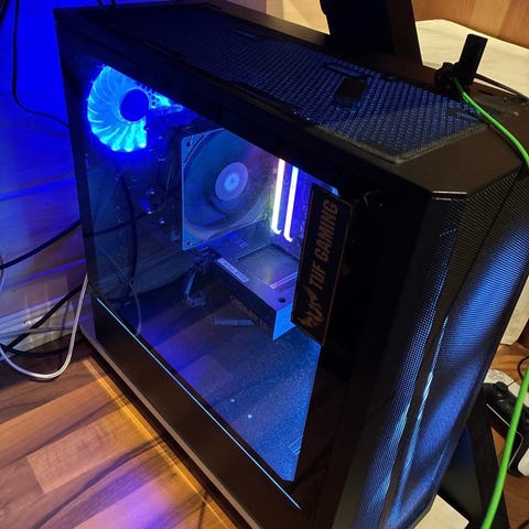 Mangler side deksel på ene siden av pc-en for å få plass til ssd som har vært lagt til.