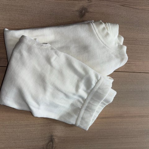 Noen av plagene er 100%ull, andre er blanding av ull og bomull med bomull innerst mot huden.