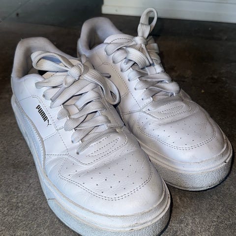 Lite brukt Puma joggesko i fargekombinasjon hvit og dus grønn.