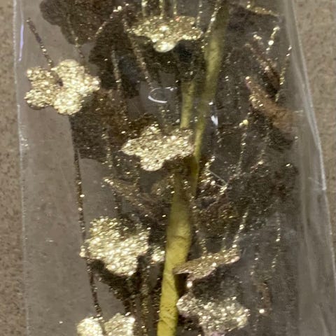 Diverse dekorasjonsartikler blomster og cellophane