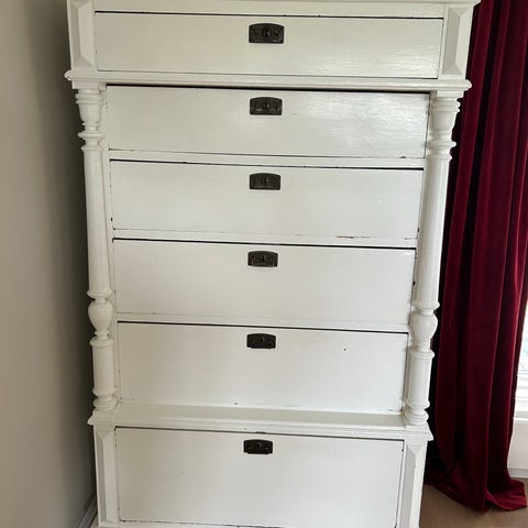 Eldre klassisk kommode, malt i antikk hvit e.l
