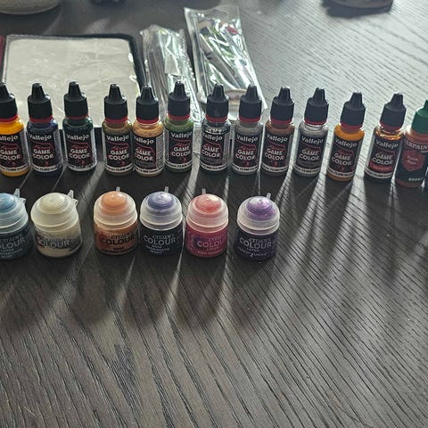 Midlertidig Tatoveringsblekksett. med tre flasker blekk i fargene magenta, maroon og svart.