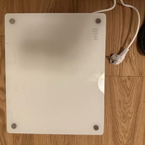 Selger en pent brukt Mill glasspanelovn 1000W med innebygd WiFi. Stilrent og moderne design med hvit glassfront som passer fint i stue, soverom eller kontor.