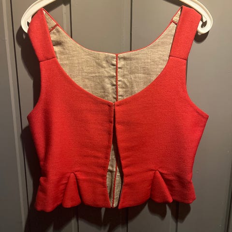 Selger en rød bunadsvest til Oppdalsbunad. Størrelsen er ca 36/38.