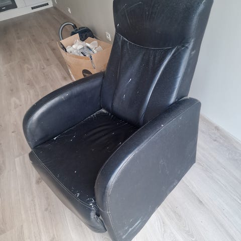 2 stk røde lenestoler med innebygd fotskammel gis bort mot henting.
