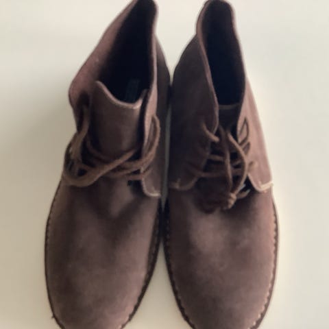 Roots sko i størrelse 39. Modellen er ankelhøy med blå semsket overdel og lyse lisser. Skoene har lys kontrastsøm rundt sålen og yttersåle i gummi. Innvendig er de fôret for ekstra komfort. Passer til hverdagsbruk i kjøligere vær.