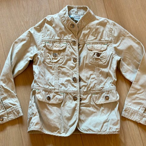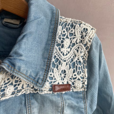 Gul denimjakke fra Name it i størrelse 116 selges for 100 kr. 98 % bomull, 2% elastan, så litt strech i stoffet. Kun brukt 1 gang, så fremstår som ny.