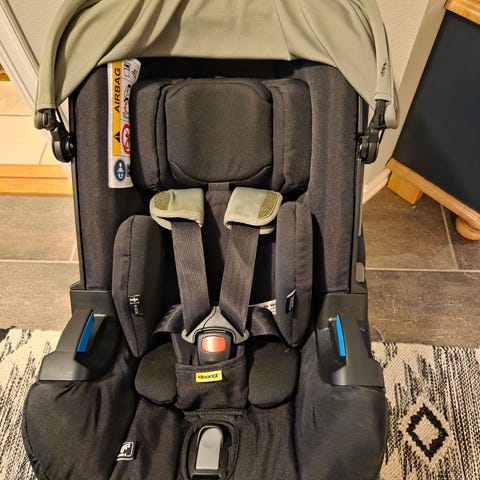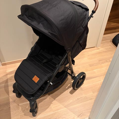 Barnevognen har 4 hjul, justerbart håndtak og kalesje. Setet har fempunktssele og frontbøyle. Bilstolen er bakovervendt med internsele og hodestøtte. Fargekombinasjon i svart og grå. Passer til transport av små barn i hverdag og på tur, både i bil og som trille på ulike underlag. 700kr for vogna