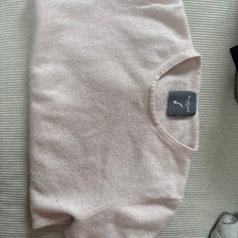 WoolLand genser i ull for dame i størrelse S. Genseren er svart med lyse kontrastfelt på skuldre og ermer. Den har høy hals med glidelås i front og lang erm. Plagget er laget i ull, egnet som ullgenser til hverdagsbruk eller som mellomlag på kjølige dager.