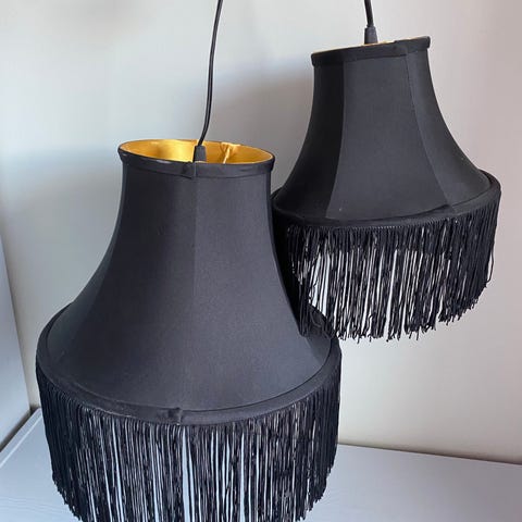 Nydelig ubrukt taklampe i sort fløyel med gullkant og frynser🌸