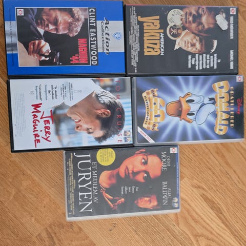 Elvis Presley VHS filmer samling. Pakken inneholder flere ulike Elvis-filmer og -konserter på VHS-kassetter. Egner seg for deg som samler på Elvis-relaterte utgivelser eller som ønsker eldre musikkutgivelser på videokassettformat. Antall titler og innhold fremgår av bildet. Pris kr.100 pr.stk
