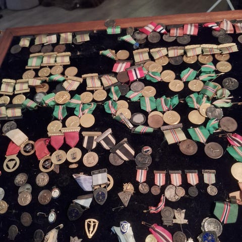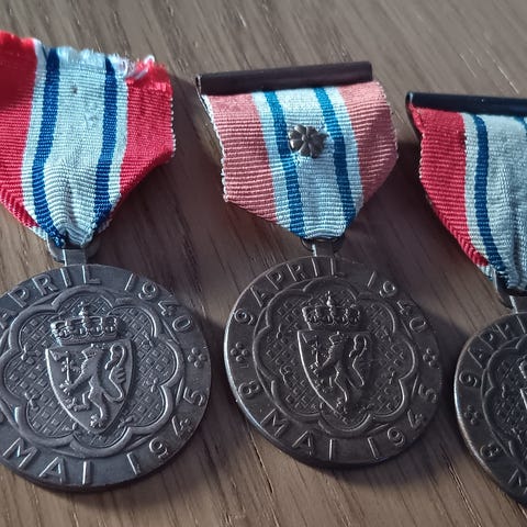 2 medaljer, en med og en uten bånd. 450., + porto 45.,