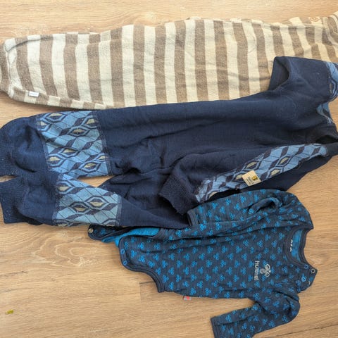 To lyseblå hhv. i str 1-2 år og 3-4 år. En rød lue i str 1-2 år. En mørk blå lue i str 1-2 år.
