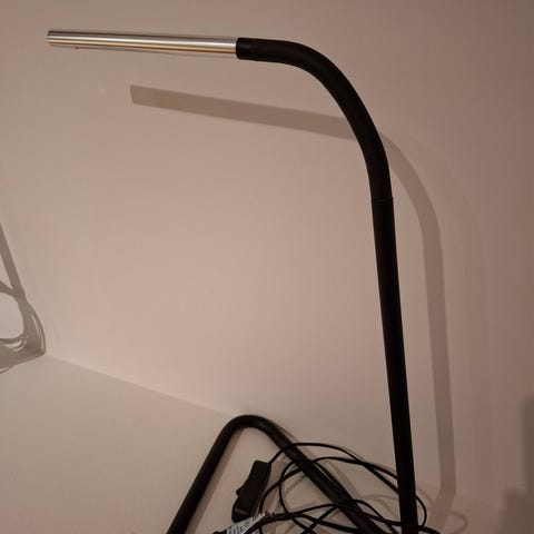 Pent brukt LED lampe. Lampen kan kobles til via USB-porten på datamaskin eller en vanlig stikkontakt.