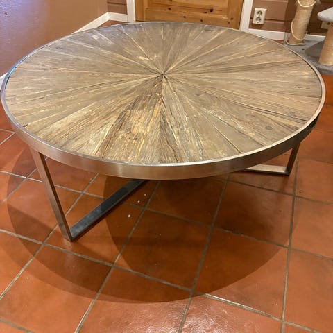 Flott hjørnebord 80x80 cm og ca. 50 cm høyt i lyst tre(bøk?). GIES BORT.