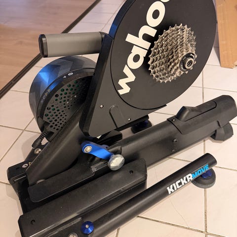 Wahoo Kickr Snap sykkelrulle for innendørs sykling. Modellen er en hjul-på-rulle der bakhjulet festes i rammen, og dekk ruller mot en motstandsunit. Sykkelrullen har enkel montering og demontering av sykkel. Leveres med ulike akslinger/hurtigkoblinger og forhøyningskloss til forhjul, slik at sykkelen står stabilt under bruk.