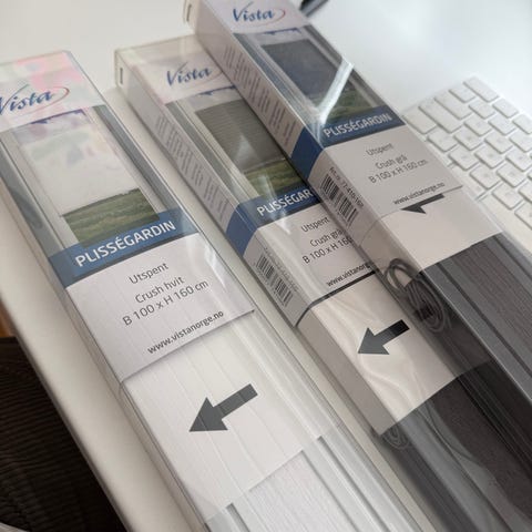 Ubrukt plissegardin spesialbestilt fra Visor selges da den ikke passet hos oss likevel. Se siste bilde for spesifikasjoner 😊