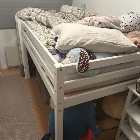 Sengen er demontert og klar for henting.