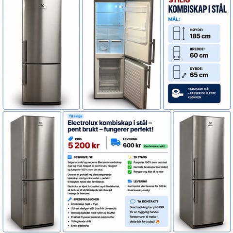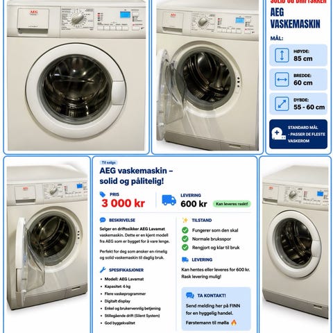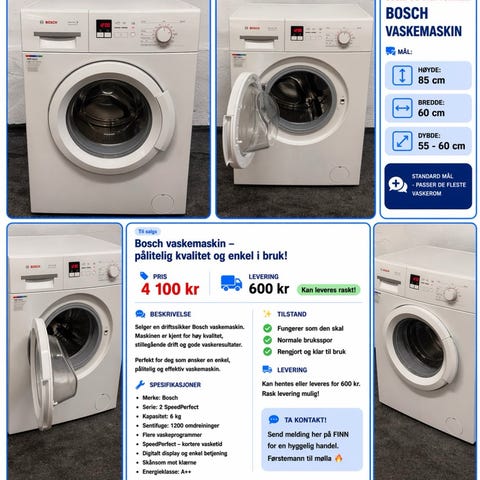 Warranty can be purchased with 1 month or up to 3 years. 1-year warranty costs 500, -NOK. Goods entitled to a warranty on the product to the extent set (entered in the field above). Used goods as it is. T.Z. is responsible for the products technical condition. That is, in the event of a warranty case, we cover all technical and electronic defects. NOTE! Misuse is not covered by the warranty. We also service and repair white goods and provide a warranty on parts and repairs. If you need help or service on other white goods, or professional white goods, get in touch for a nice chat or send a message on finn.no. If you want, we can deliver to Oslo. Delivery costs from 600,-Kr. Transport costs when making a sale are not refunded. The cost is not refunded when canceling a purchase. We do not have our own premises, but sell from stock and also deliver to your home. It is also possible to come and look at white goods by arrangement. Company Vipps costs 200,- NOK extra