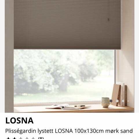 Ubrukt plissegardin 75x160 selges da den ikke passet vinduet likevel. Spesialbestilt fra Visor.