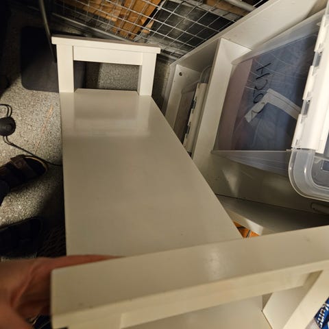 Kjøpte denne da æ sku hi vaskemaskin og tørketrommel oppå men det blei alt for høyt så det funka dårlig. E litt bruks merker da æ satt maskina oppå. Den e heil å fin ellers. Regulering av høyden med skru bein. Må hentes fortløpende da den tar plass, sendes itj. Ny pris 1399 på power. Selger for fast pris 500. 31*62*56 (h,b,l).