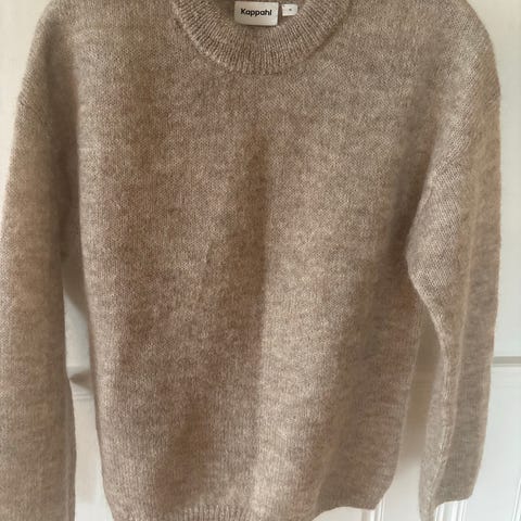 Jeg har klippet av lapp inni genser - men genseren inneholder noe ull 🩷 I en beige melert farge.
