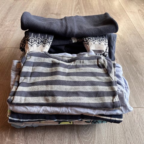 -bodyene: 3x fra Hust&Claire, 1x joha, 2 Name it, bodyene er litt misfarget og litt hull i, jeg prøvde å ta bilder av alt feil jeg fant, mest blanding av Merino ull og bambus viskose. (Body med mus er en sett med mørk blå farge bukse men jeg syns buksene var alt for liten i størelse, kanskje jeg vasket de feil.)