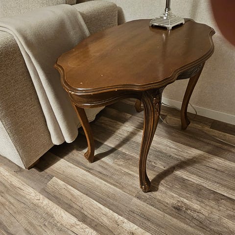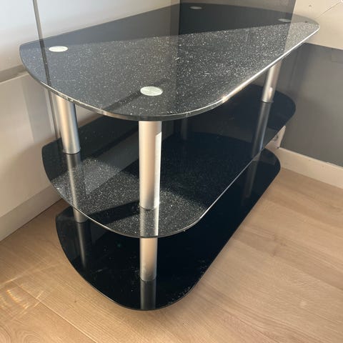 Mørkt lite Tv-bord med glassdør gis bort ved henting snarest.
