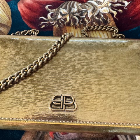 Balenciaga clutch veske i lær for dame. Vesken har et rektangulært design med glidelåslukking øverst. Utført i brunt skinn med Balenciaga-logo i kontrastfarge på forsiden. Passer til oppbevaring av mindre eiendeler som mobil, nøkler og lommebok, og kan brukes både til hverdags og ved mer formelle anledninger.