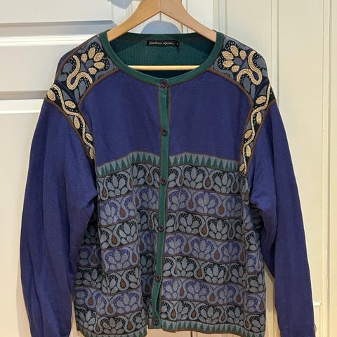 Gjort en liten reparasjon ved søm under høyre arm (ca. 3 cm), kan gjøres bedre. Synes neppe.