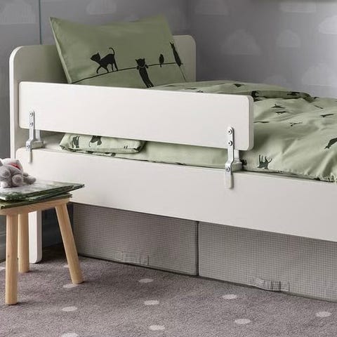 En sengehest fra JLY, som monteres på siden av sengen, og forhindrer at barnet ruller ut av sengen. Den er laget av furu og plywood av høy kvalitet, og passer til de fleste senger med åpne sider.