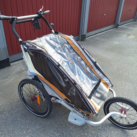 Brukt mest som vogn, noen ganger med sykkel og noen ganger med ski.
