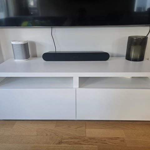 BESTÅ TV-benk, hvitbeiset eikemønster, 180x40x38 cm Reservert
