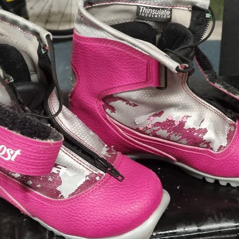 Alpina Touring Frost skisko i rosa i str 29. Langrennskoene har NNN-såle som passer til NNN-kompatible bindinger. Fint brukt. Må hentes.