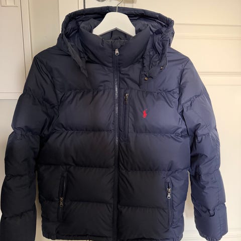Polo Ralph Lauren dunjakke for barn i størrelse 98. Jakken er blå og laget i nylon med vattering av dun og fjær. Modellen har hette, glidelåslukking foran og ribbestrikkede mansjetter. Unisex-passform som passer både gutter og jenter.