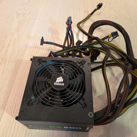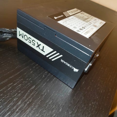 Corsair VS550 strømforsyning til stasjonær PC med effekt på 550W. Enheten har fastmonterte kabler med blant annet 24-pin hovedkortkontakt, CPU-strømkontakt og flere kontakter for lagringsenheter og eventuelle tilleggskort. Strømforsyningen har innebygd kjølevifte på baksiden for luftgjennomstrømning i kabinettet. Farge: svart.