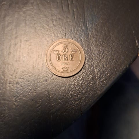 Svensk 5-øre fra 1874, preget under kong Oscar II sitt styre.