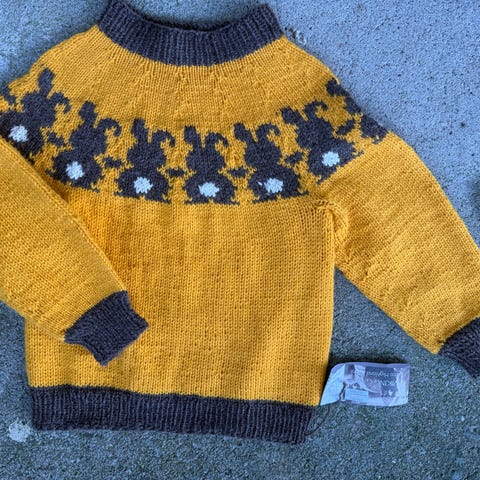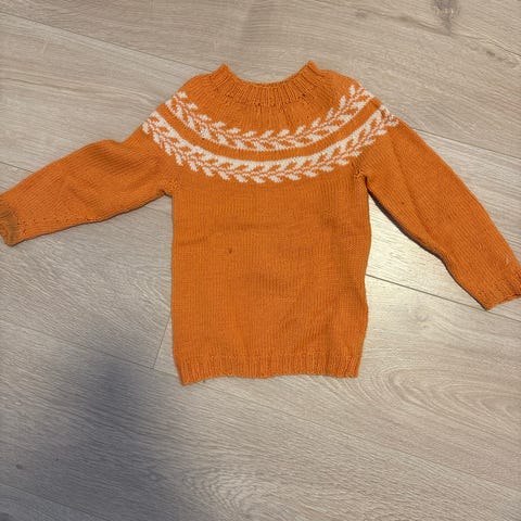 Hjemmestrikket påskegenser str 3år.