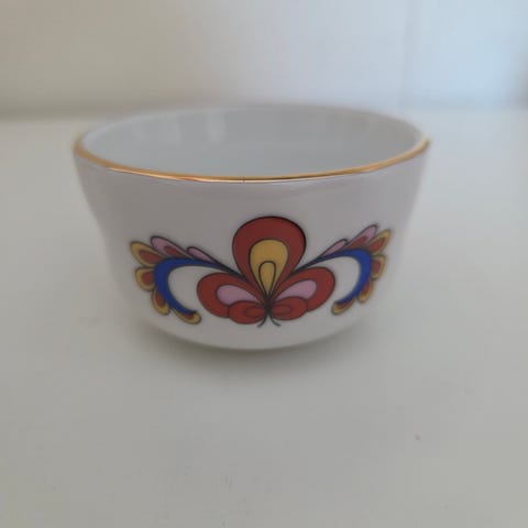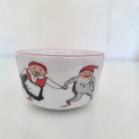 Liten Figgjo Flint skål (Hardangerdansere) Diameter: 13 cm. Høyde 8 cm. Selges.