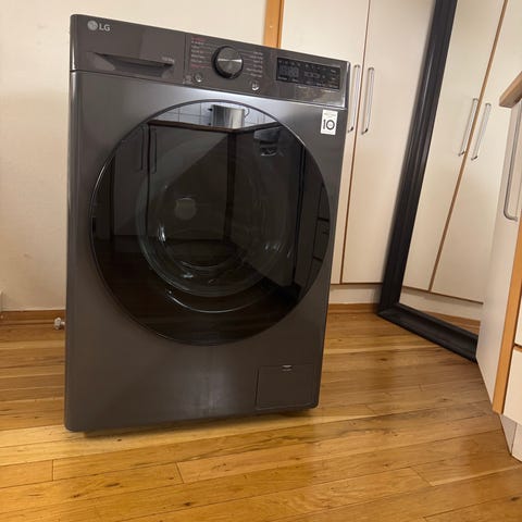 LG vask og tørk er både vaskemaskin og tørketrommel i samme maskin. Veldig flott mørk farge som passer ypperlig på mørke bad!