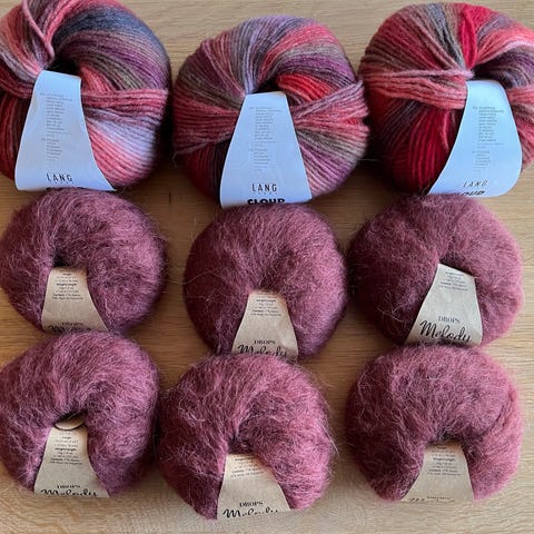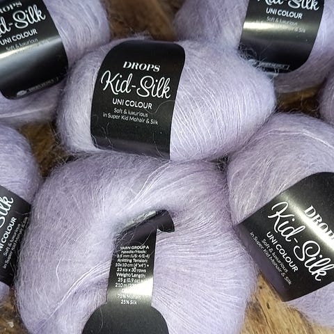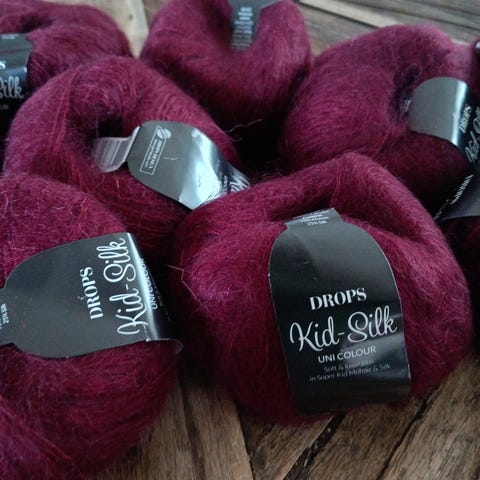 I annonse: selger jeg 13 nøster i matchende farge som var tenkt å strikke sammen med Kid-Silken her.