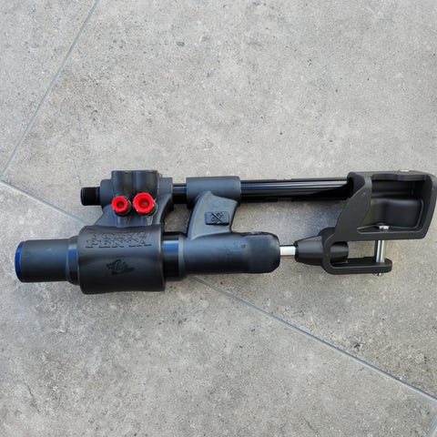 Bildene viser vindroret, ror og vindfløy. Festebraketten står på båten. I demontert stand er det fire deler. Roret er ikke brukt etter service fra produsenten.