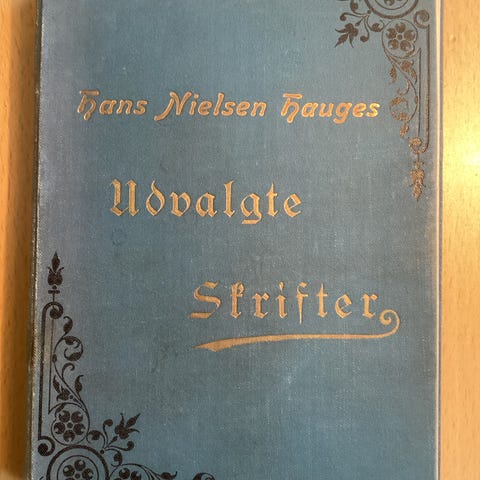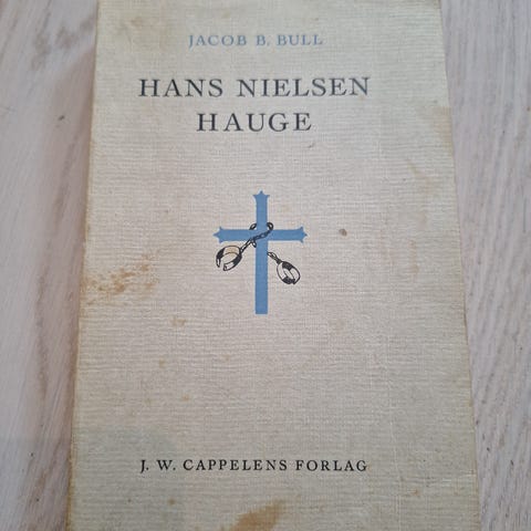 Jacob B. Bull «Hans Nielsen Hauge» innbundet bok. Utgitt i Kristiania i 1900 av Steen’ske Bogtrykkeri og Forlag. Boken har dekorert perm og mønstret forsats. Teksten er på norsk og omhandler Hans Nielsen Hauge. Egner seg for samlere av eldre norsk litteratur og historiske utgivelser. Flekker på sidene.