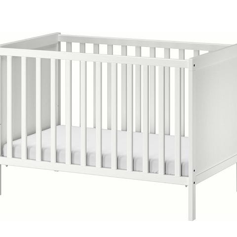 IKEA Sundvik sprinkelseng i grå farge. Kjøpt ny i 2023. Klassisk barneseng med sprosser langs begge langsidene. Størrelsen er 60x120 cm. Sengebunnen kan monteres i 2 høyder, og den kan åpnes opp ved å fjerne en av langsidene. Sengen er svært lite brukt, og fremstår som ny. Hvis ønskelig medfølger madrass uten tillegg i prisen. Egnet for baby og småbarn i den perioden de bruker sprinkelseng.