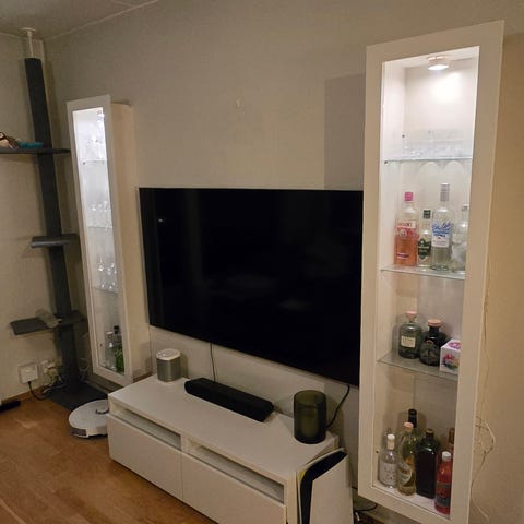 En fin tv-bank med to skuffer