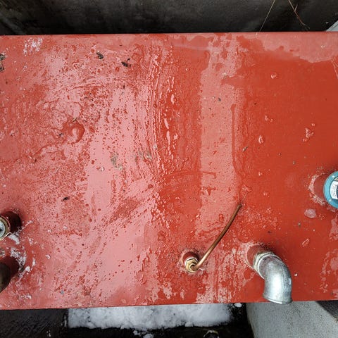 Gir bort et høyskap med 2 ben i front, som monteres mot vegg. Speil utvendig åå døren.