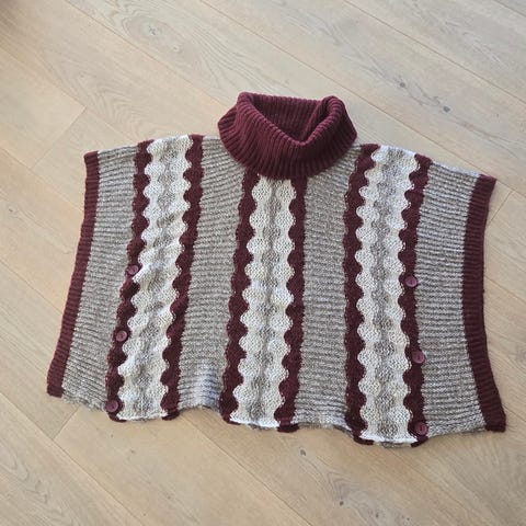 Fin oransje poncho/cape/sjal i ull med knapp i midten