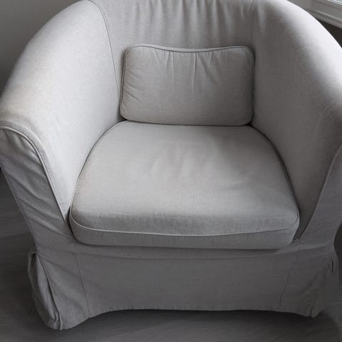 Stol som er fin på f.eks barnerom. Stødig og god. Har lite merker foruten en liten rift som er limt. Ikke spesielt synlig. Se bilder. Mye bruk igjen på denne! Har dessverre ikke plass til den lenger.